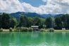 Piscine de plein air sur le site exceptionnel de la base de loisirs avec un panorama magnifique sur les montagnes entourant Samoëns.
